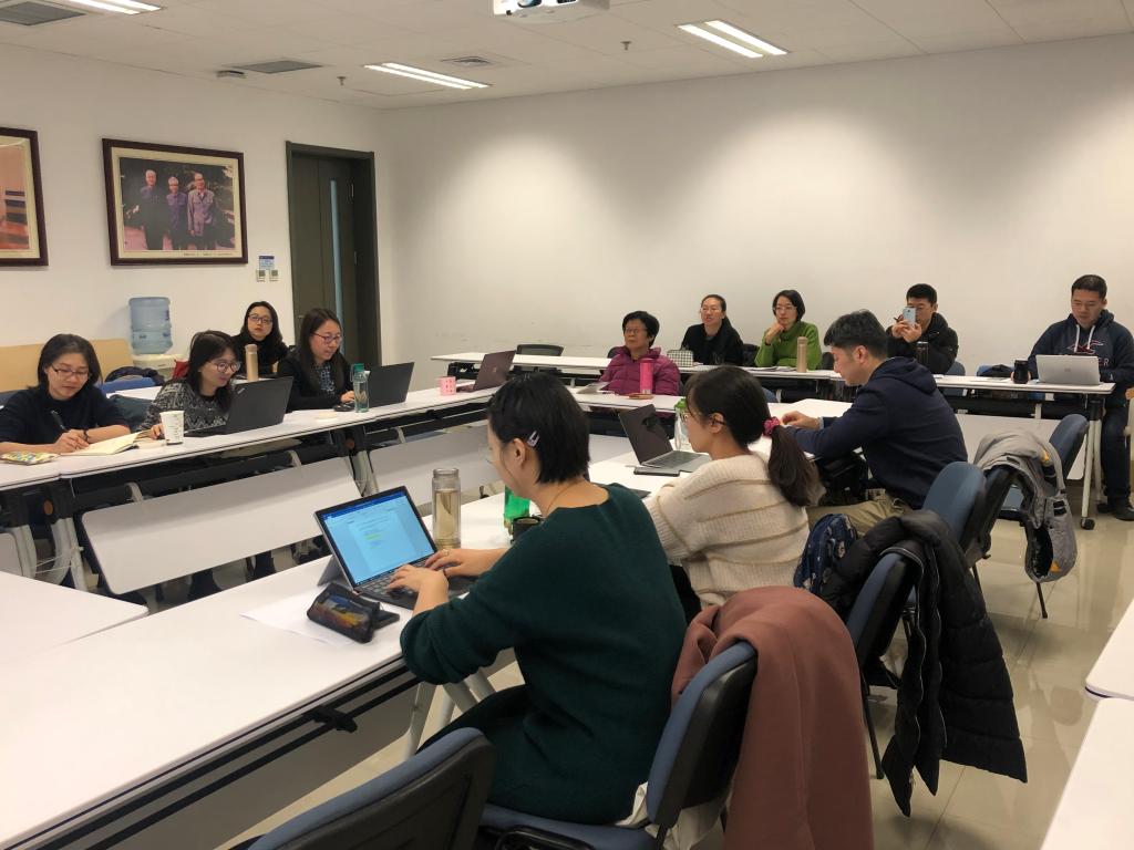 张佳琛、汪波、邵颖、董希骁、叶良英五位老师详细介绍了已完成的书稿内容,文秋芳教授对他们的汇报逐一进行点评,并提出了具体修改意见。随后其他老师简要报告了自己书稿撰写的进度和遇到的困难。文秋芳教授与大家共同探讨解决困难的办法。最后,文秋芳教授鼓励各位老师一定要抓紧时间,排除一切干扰,下定决心完成书稿。