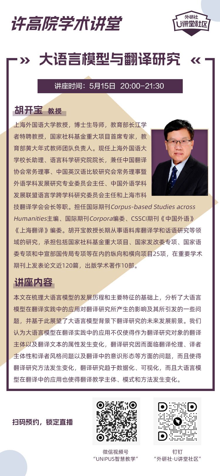 太阳集团官网8722学术讲堂第六十五讲 大语言模型与翻译研究