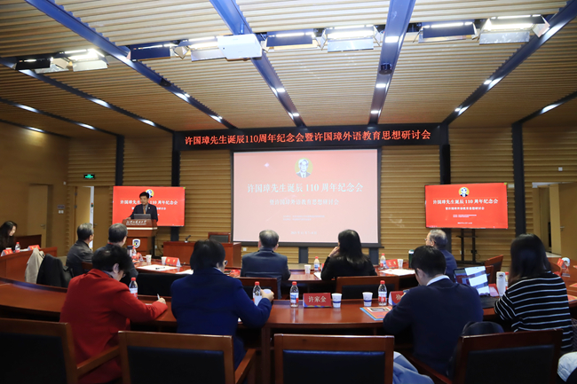 北外科研处处长张天伟教授,英语学院院长杨鲁新教授,中国外语与教育研究中心主任何伟教授,中国外语与教育研究中心徐浩教授、张虹教授等参加会议。许国璋外语教育思想研讨会的举办,对于弘扬和继承以许国璋先生为代表的中国外语界老前辈严谨治学的教育家精神、鼓舞我们不懈为外语学科建设而感悟思想伟力、砥砺奋进前行,具有重要意