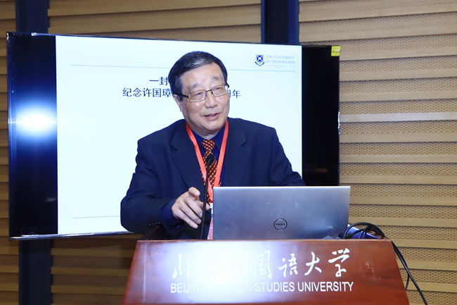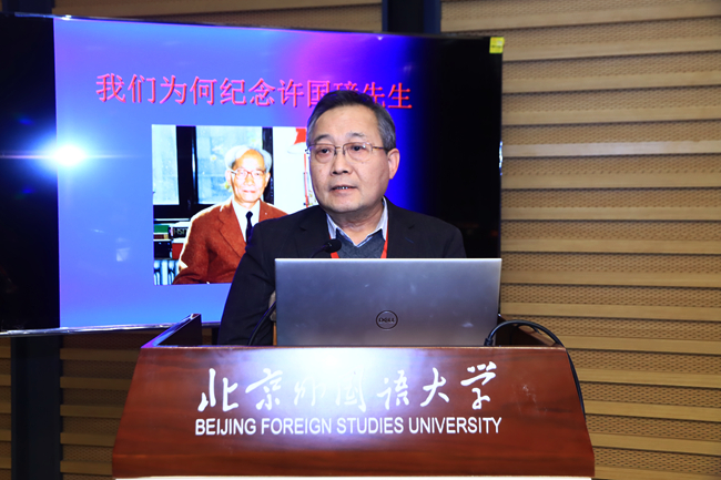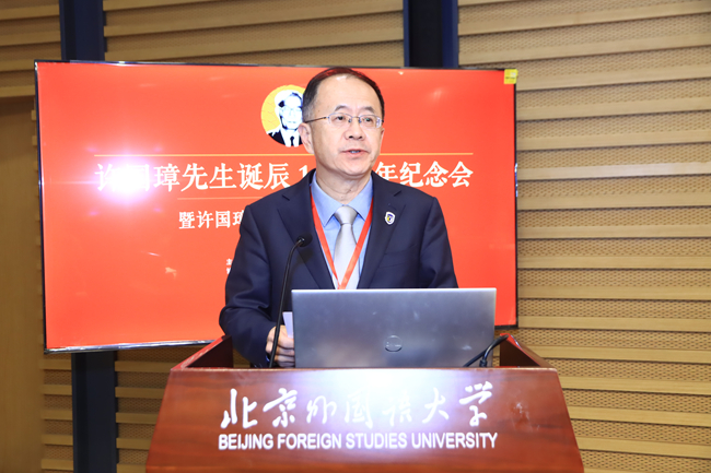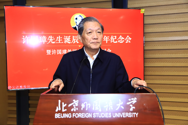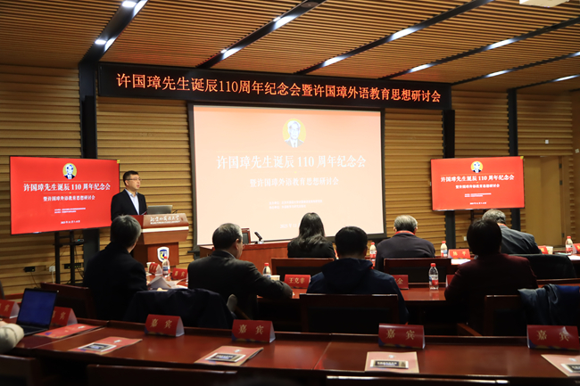 北外校长、党委副书记贾文键向许国璋先生表达深切的缅怀和崇高的敬意,回顾了许国璋先生为中国外语教育事业作出的不朽贡献,他表示,许国璋先生学贯中西、博古通今,是我国当代外语教育的开拓者,其广阔的视野,深厚的学养,孜孜以求的精神,自立自强的风骨,令人无限敬仰和感佩。此次纪念会,就是要学习他爱国敬业、无私奉献的崇高品格,勤奋严谨、求实创新的治学精神,坚持真理、博大精深的学术境界,继承并弘扬他留下的宝贵精神财富,为教育强国交出无愧于时代的答卷。北外愿与外语界同仁一起,勠力同心,推动我国外语教育事业发展更上一层楼,为中华民族伟大复兴、为构建人类命运共同体作出外语人的应有贡献。
